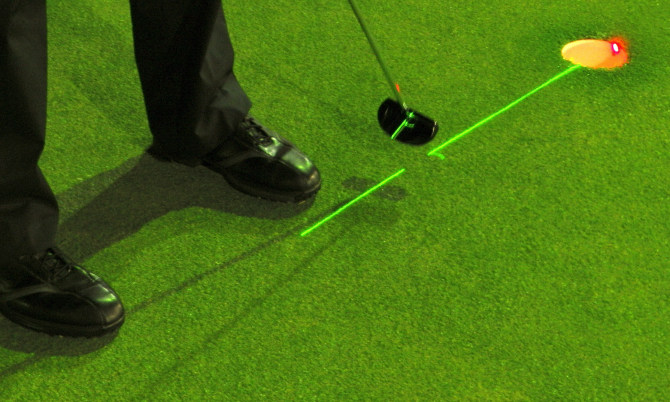 緑のレーザーは、毎回正しいアドレスをしっかり目で確認し、ボールがパターのどこに当たっているのかを正確に知ることができます。クラブフェース上での 打点のバラツキをみつけ、それを正しく調整しボールの中心を確実 にヒットする練習ができます。